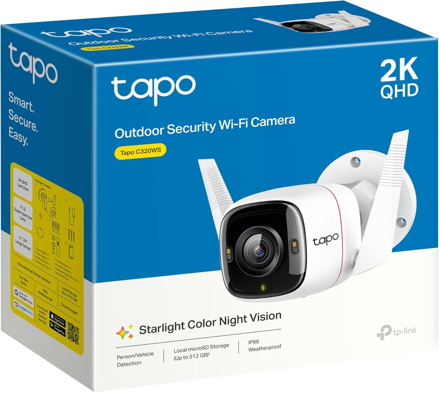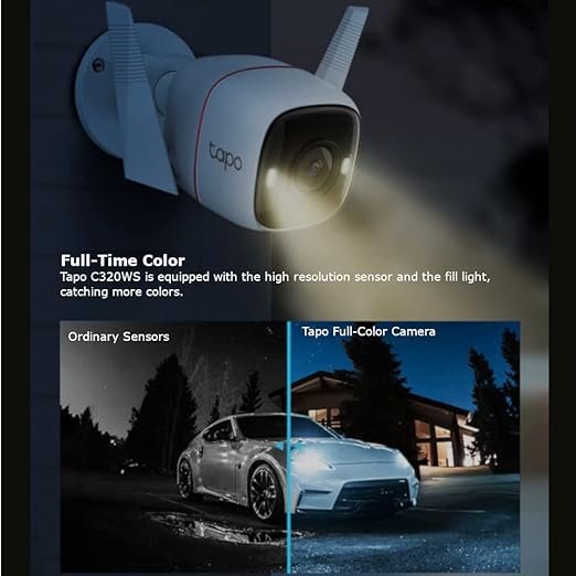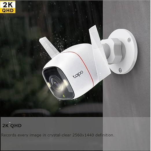 تابو تي بي-لينك كاميرا أمنية خارجية واي فاي ذكية 4MP كشف حركة، رؤية ليلية كاملة، SD، تحكم صوتي، لون أبيض 2K HD Full Color (C320WS)