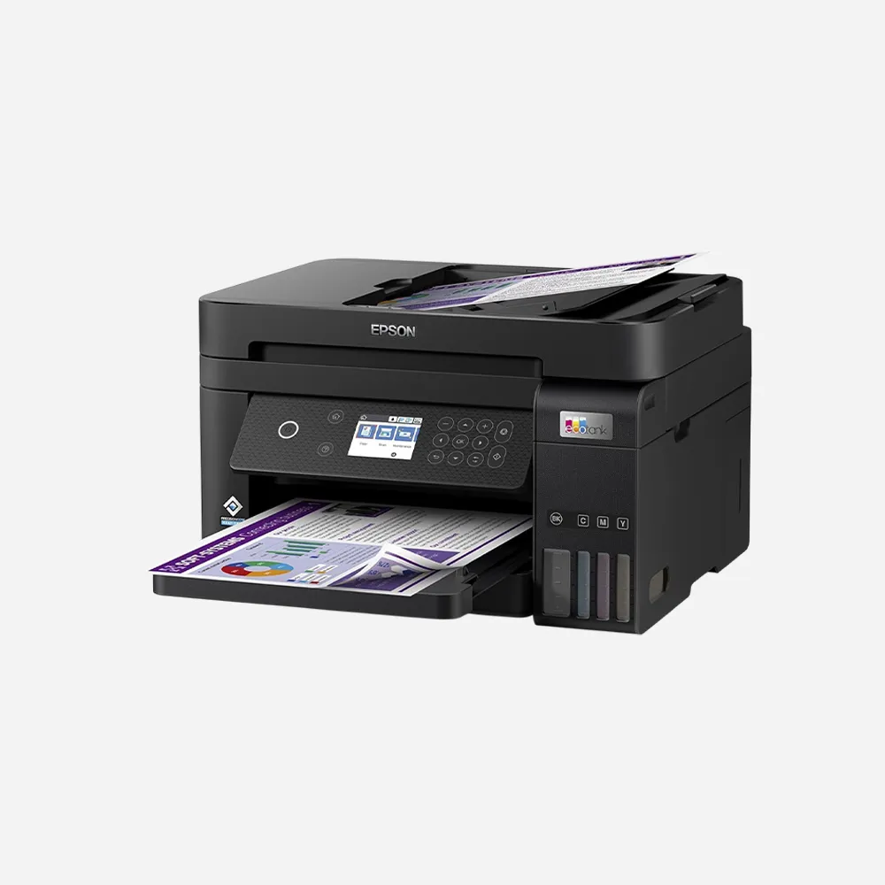 The Epson EcoTank L6290 is a high-efficiency A4 color multifunction printer designed for office and business use. It supports print, scan, copy, and fax with automatic duplex printing and a built-in ADF for smooth, high-volume workflows.