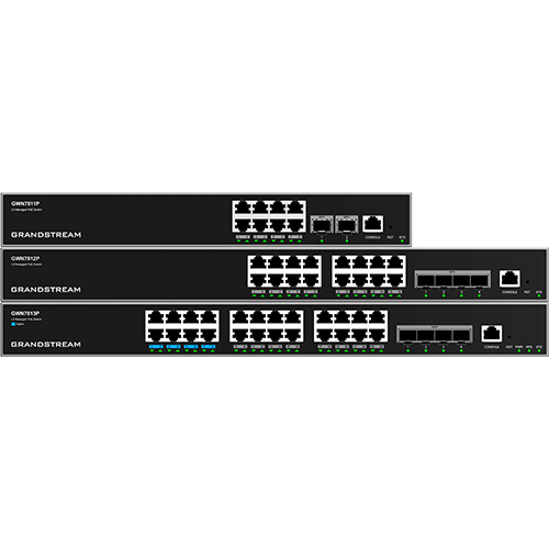 Grandstream GWN7813P Layer 3 Managed Network Switch, 24x GbE RJ45 PoE 802.3 af/at, up to 60W per port, 4x SFP+, stackable, optional redundant PSU