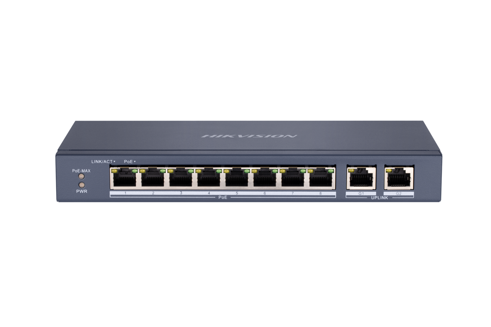 8 × 10/100 Mbps PoE port, and 2 × Gigabit RJ45 port.