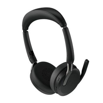 The Jabra Evolve2 65 is a wireless business headset with clear call quality, 3 microphones, passive noise isolation, and up to 37 hours of battery life. Ideal for meetings, remote work, and call centers